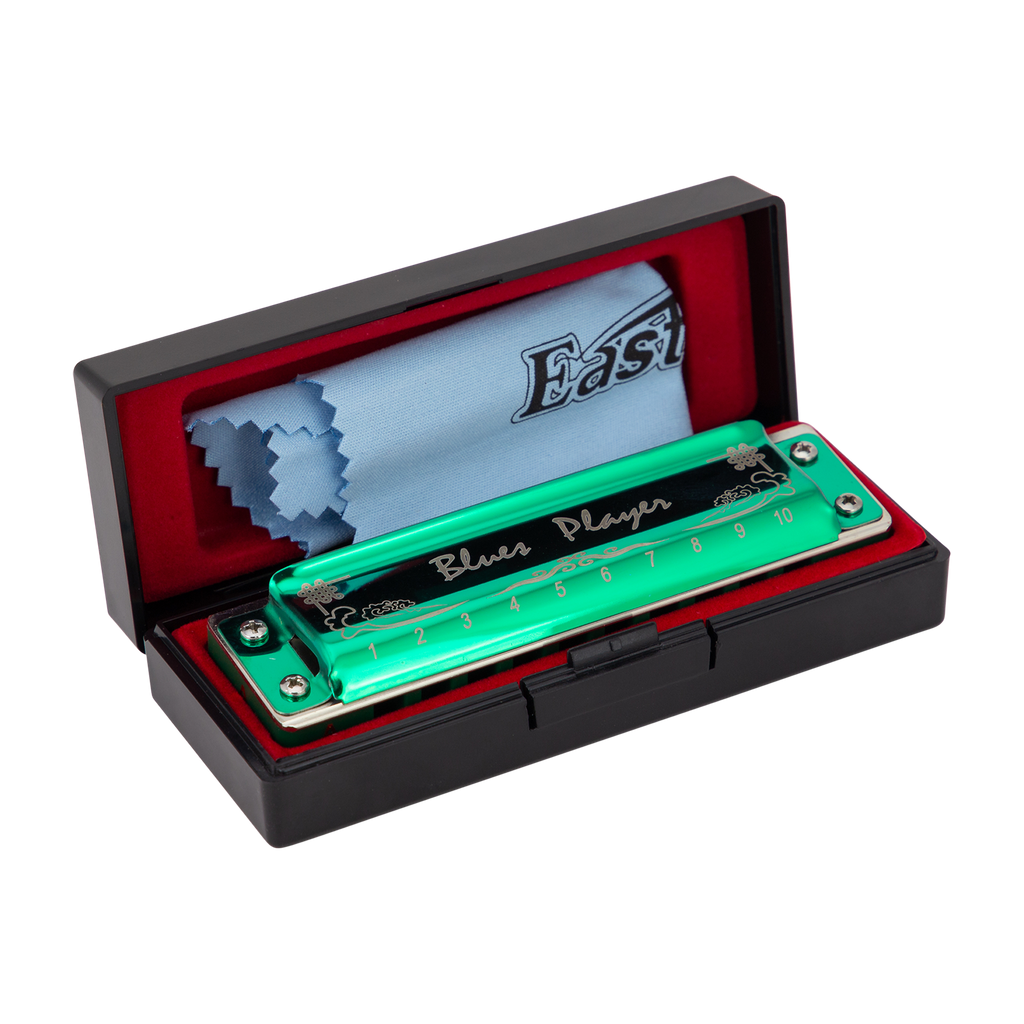 The East Top PRO20 10 Hole Blues Player Harmonica is ideal for blues, folk, rock, country, jazz, and more—perfect for both beginners and pros. Features precise tuning, rich sound and fast response thanks to phosphor bronze reeds.