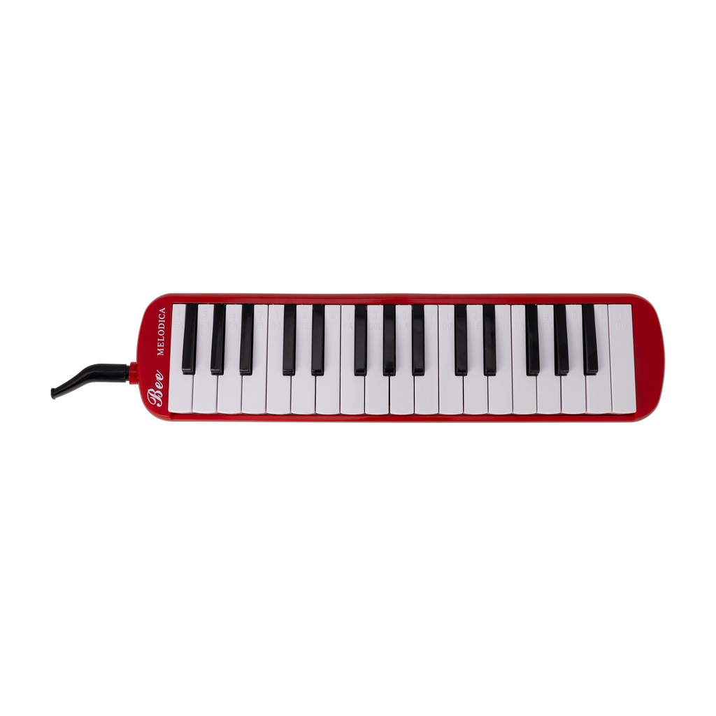 East Top 32 keys melodica, each key with the note on it, easy for students or beginners to play and learn.  With a short mouthpiece and one white soft tube, you can hold the melodica with one hand (hold your hand under the strap) or put the melodica on the table and use the white soft tube for blowing.