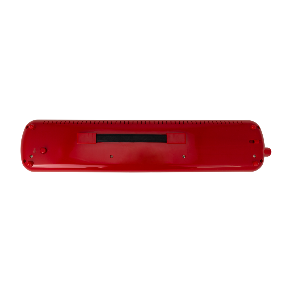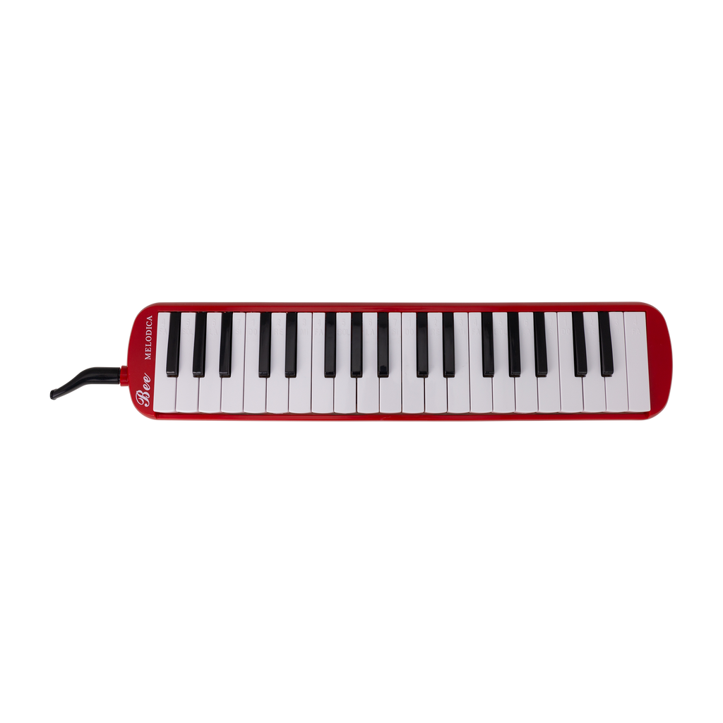 East Top 37 keys melodica, each key with the note on it, easy for students or beginners to play and learn. With a short mouthpiece and one white soft tube, you can hold the melodica with one hand (hold your hand under the strap) or put the melodica on the table and use the white soft tube for blowing.