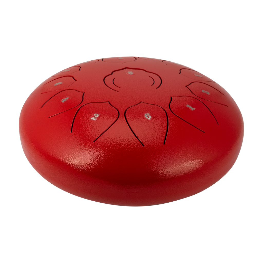 Drumfire 12" 13 Note Tongue Drum & Case Red - modern percussion instruments known for their rich, meditative sound. Inspired by traditional Chinese instruments they blend contemporary design with ancient musical philosophy. Often used in spiritual practices such as Zen yoga, and sound healing, their soothing tones help calm the mind and body.